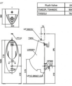 Lưu ý: nếu dùng van xả cảm ứng âm tường cần phải mua kèm theo ống nối HS376TT.