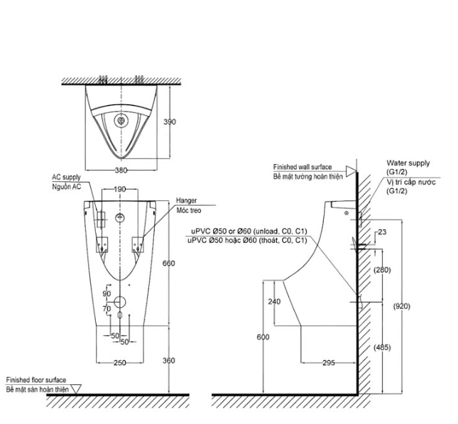 Bản vẽ Bồn Tiểu Nam Treo Tường TOTO USWN902ASV#XW