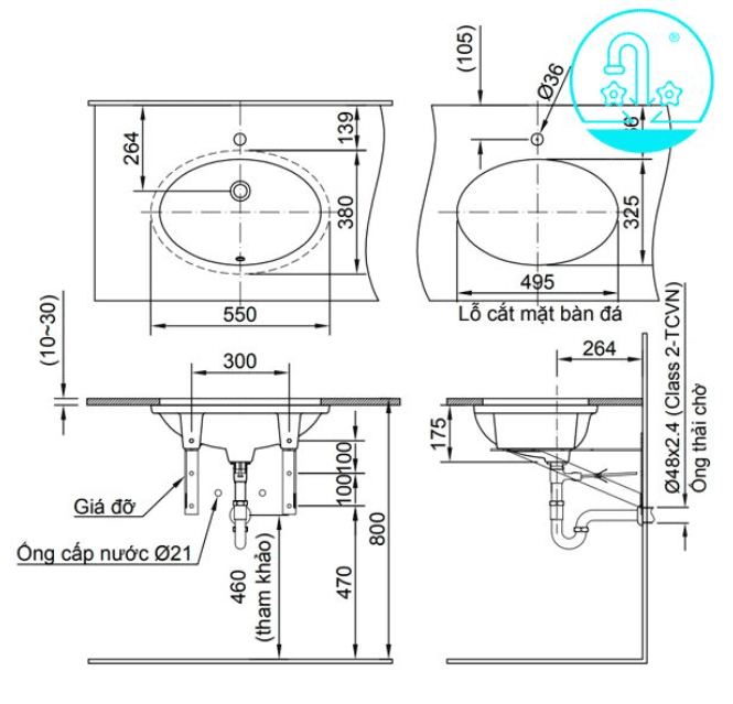 • Phân loại: Lavabo âm bàn