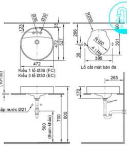 • Cắt theo đường vễ sẵn của loại chậu sẽ lắp.