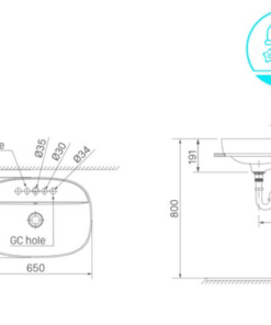 Dưới đây là thông số kỹ thuật của Chậu Rửa Lavabo INAX AL-652V Đặt Bàn Aqua Ceramic