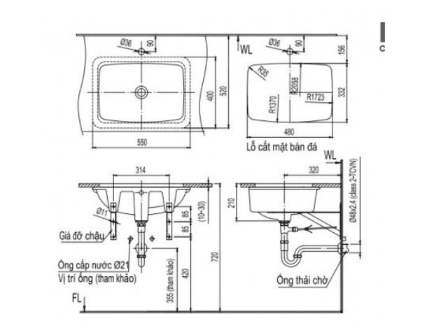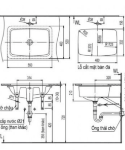 Dưới đây là bản vẽ kỹ thuật của chậu rửa mặt Lavabo Inax L2298V. Nếu bạn đang tính lắp đặt thì xem ngay nhé
