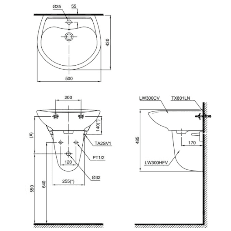 Lỗ đặt vòi Ø35 được thiết kế theo tiêu chuẩn quốc tế, có thể tùy chọn kết hợp được với các mẫu vòi chậu rửa mặt như: TS222A, TS240A , TS260A, TX115LESBR, TX115LELBR, TLG01301V, TLG02301V, TLG03301V,…