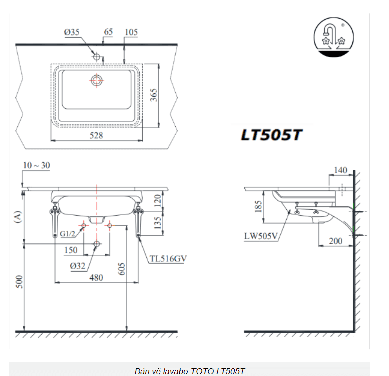 Thông Số Kỹ Thuật Của Chậu Rửa Mặt Lavabo TOTO LT505T#XW Âm Bàn