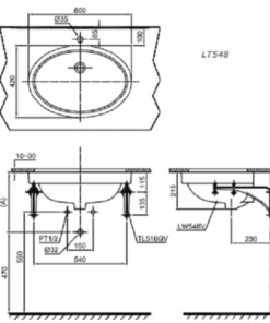 Để thuận tiện hơn trong việc lắp đặt ngay tại nhà, tham khảo kỹ hơn bản vẽ kỹ thuật của mẫu lavabo âm bàn TOTO này dưới đây.