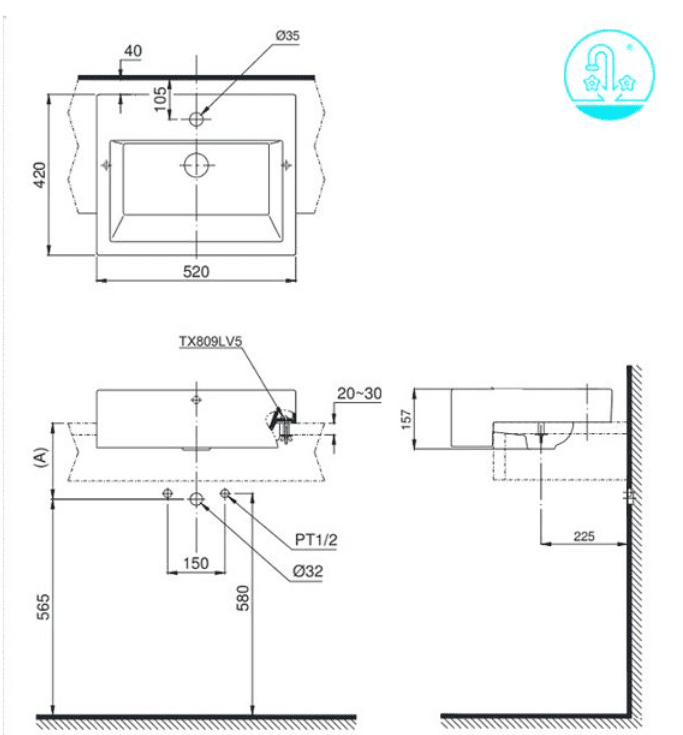 Thông Số Kỹ Thuật Của Chậu Rửa Mặt Lavabo TOTO LT647CR#XW Bán Âm Bàn
