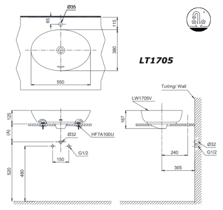 Lưu ý: Sản phẩm không bao gồm vòi chậu và ống thải chữ P.