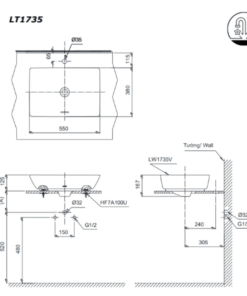 Lỗ đặt vòi Ø35 được thiết kế theo tiêu chuẩn quốc tế, có thể kết hợp được với các mẫu vòi chậu lạnh hoặc nóng lạnh như: TLG 01307V, TLG 02307V, TLG 03305V, TLG 07305V, TLG 08305V, TLG 09305V,…