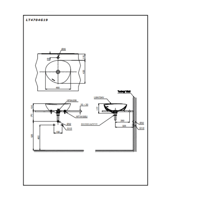Bản vẽ Chậu Rửa Mặt TOTO LT4704G19#XW Đặt Bàn