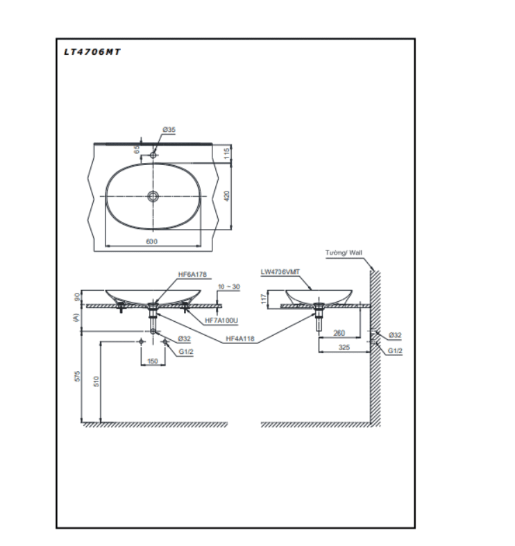 Bản vẽ Chậu Rửa Mặt TOTO LT4706MT#CMW Đặt Bàn Trắng Mờ