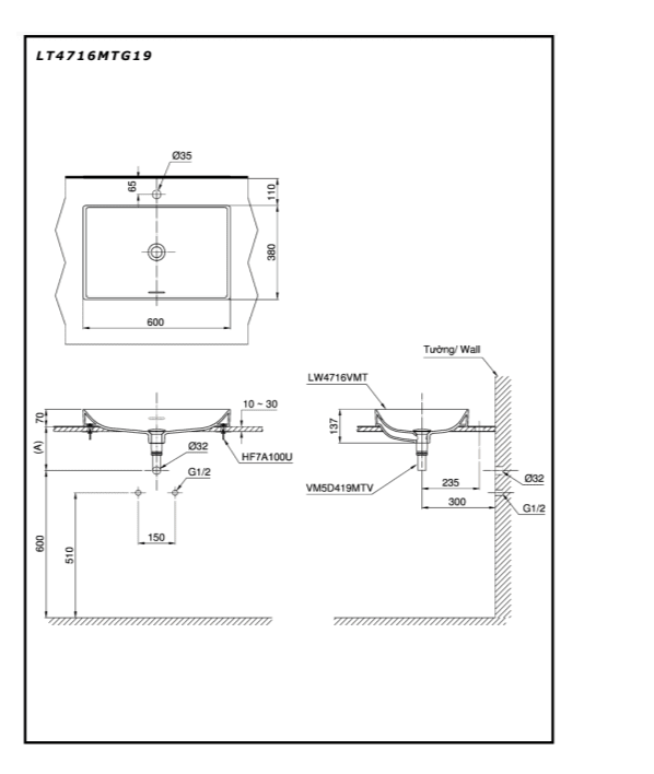 - Đường kính lỗ bắt vòi: Ø35 (mm)