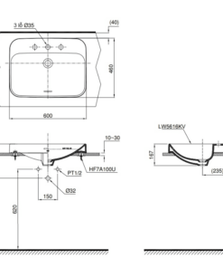 Bản vẽ Chậu Rửa Mặt TOTO LT5616#XW Đặt Bàn 3 Lỗ