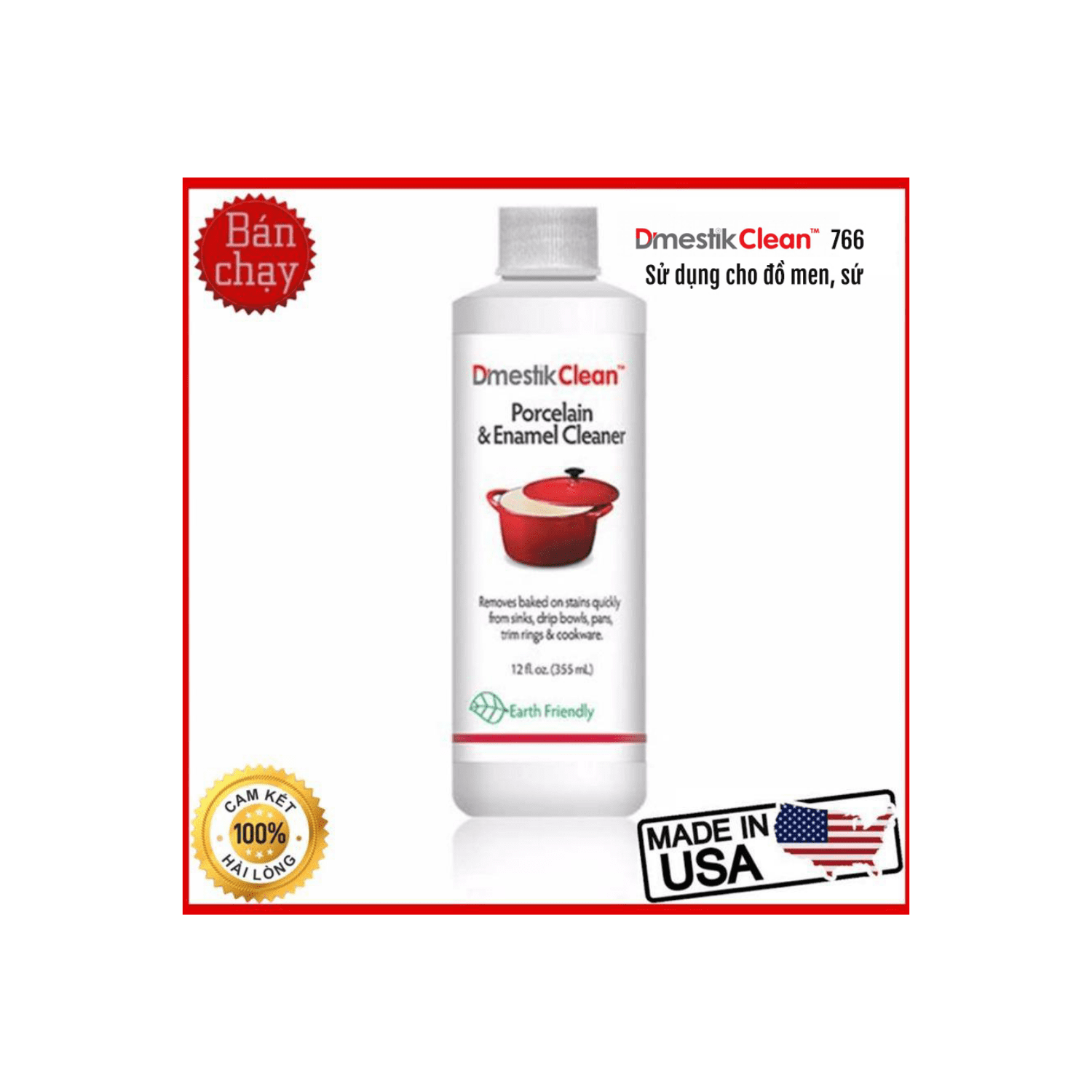 Dmestik Clean 766 là sản phẩm làm sạch chuyên dụng, được phân phối bởi thương hiệu Kim Quốc Tiến, nổi tiếng với khả năng đánh bay các vết bẩn cứng đầu trên bề mặt đồ dùng bằng men sứ như nồi, chảo, bát đĩa. Với công thức tiên tiến, sản phẩm không chỉ làm sạch hiệu quả mà còn bảo vệ bề mặt đồ dùng, mang đến vẻ sáng bóng như mới.