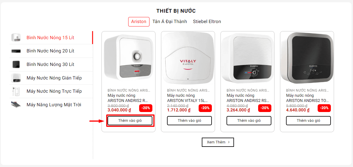 Sau khi chọn xong sản phẩm, bấm “Thêm vào giỏ”
