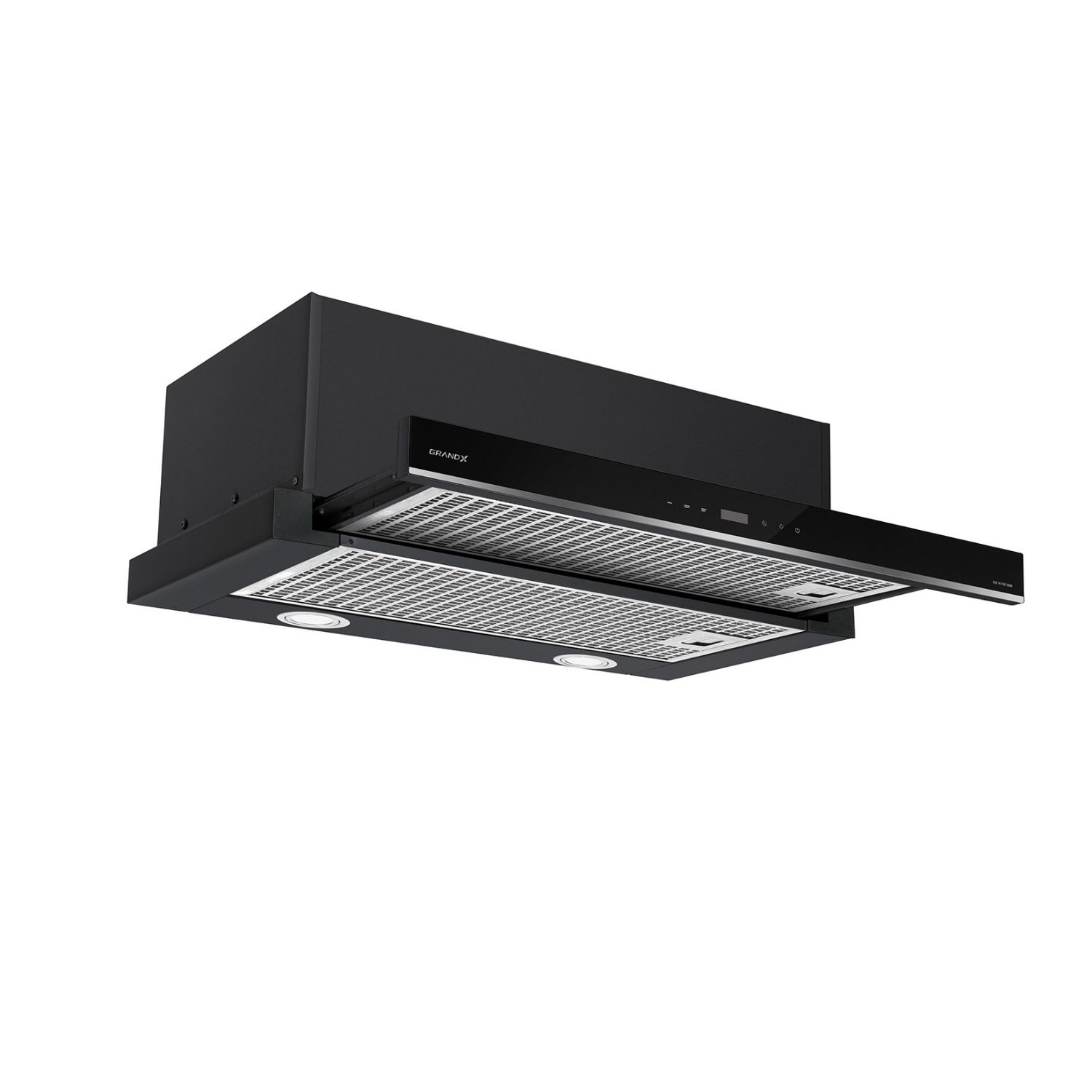 Máy hút mùi GrandX GX H70F58B gây ấn tượng với thiết kế Telescopic Tornado hiện đại, rất phù hợp với các không gian bếp âm tủ, giúp tiết kiệm diện tích một cách tối ưu. Mặt kính trước được thiết kế vát cạnh Beveled edge tinh tế, kết hợp cùng thân máy sơn tĩnh điện màu đen sang trọng, mang đến vẻ đẹp nổi bật cho căn bếp của bạn.