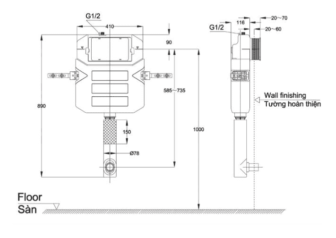 Bản vẽ Két Nước TOTO WH060 Âm Tường