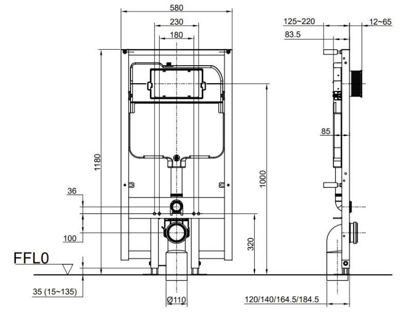 Bản vẽ Két Nước TOTO Âm Tường WH172A