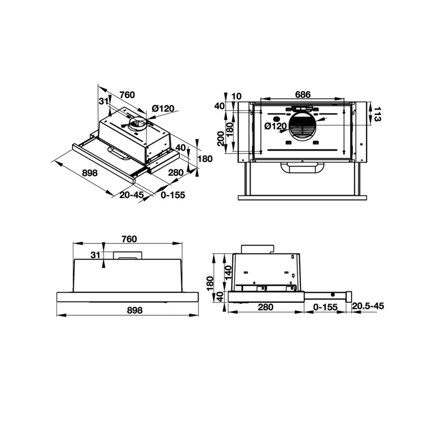 Thông số kỹ thuật Máy Hút Mùi HAFELE HH-TI90D 539.81.085 Âm Tủ 90cm