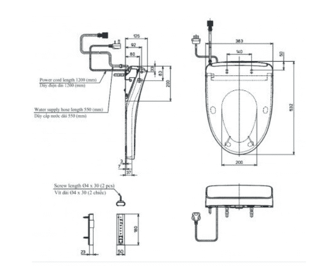 Xem thêm bản vẽ kỹ thuật của sản phẩm để dễ dàng hơn trong việc tự lắp đặt tại nhà nhé!