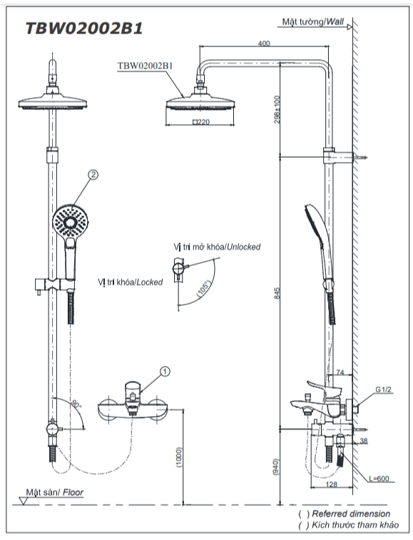 Thông số cơ bản Sen Cây TOTO TBW02002BA/TBG02302VA/TBW02017A Nóng Lạnh