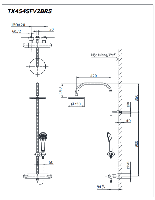 • Áp lực tối thiểu: 0.05 MPa (Áp lực động)