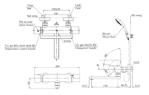Thông số cơ bản của Sen Tắm TOTO TBV03429V/TBW01010A