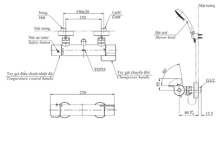 - Sen Tắm TOTO TBV03431V/TBW03002B Nhiệt Độ là sản phẩm vòi sen tắm của thương hiệu cao cấp TOTO dòng GG (Loại không vòi xả bồn)