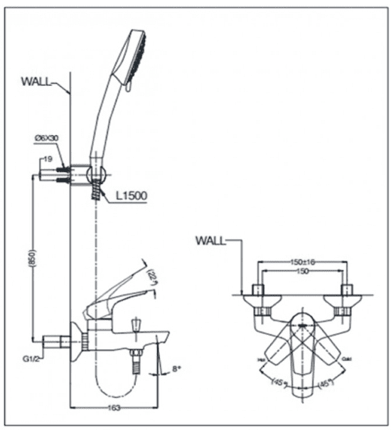 Bản vẽ Sen Tắm TOTO TVSM107CRR/DGH108ZR Nóng Lạnh