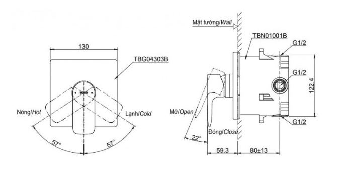 Thông số cơ bản của Van Âm Tường TOTO TBG07304VA/TBN01001B