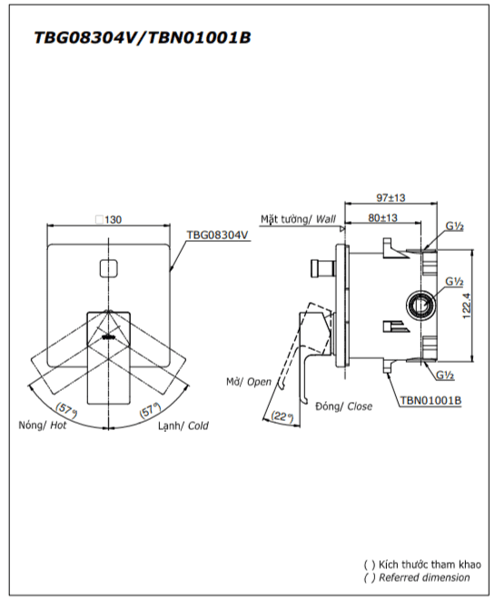 Thông số Van Âm Tường TOTO TBG08304VA/TBN01001B Nóng Lạnh