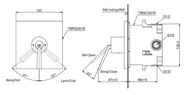 Thông số cơ bản của Van Âm Tường TOTO TBP02302B/TBN01001B