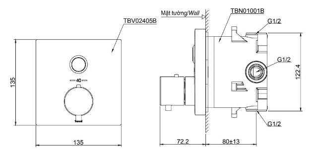 Thông số cơ bản của Van Âm Tường TOTO TBV02405B/TBN01001B