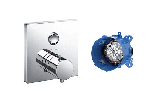 • Tên sản phẩm: Van điều chỉnh nhiệt độ (1 đường nước ra) kèm van chuyển hướng (loại nút nhấn) và phụ kiện âm tường