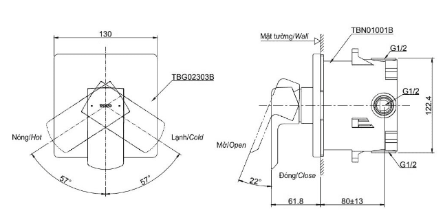 Thông số cơ bản của Van Điều Chỉnh Nhiệt Độ TOTO TBG02303B/TBN01001B