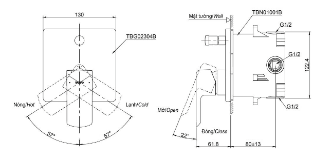 Thông số cơ bản của Van Điều Chỉnh Nhiệt Độ TOTO TBG02304B/TBN01001B