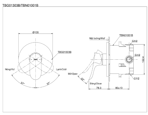 • TBG01303BA: Van điều chỉnh nước nóng lạnh