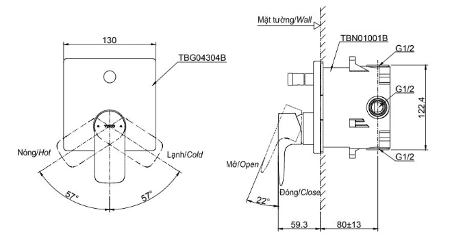 Thông số cơ bản của Van Điều Chỉnh Nhiệt Độ TOTO TBG04303B/TBN01001B