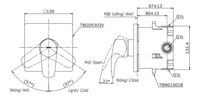 Thông số cơ bản của Van Điều Chỉnh Nhiệt Độ TOTO TBG09303VA/TBN01001B