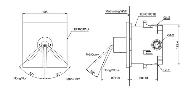 Thông số Van Điều Chỉnh Nhiệt Độ TOTO TBV01101B/TBN01104B