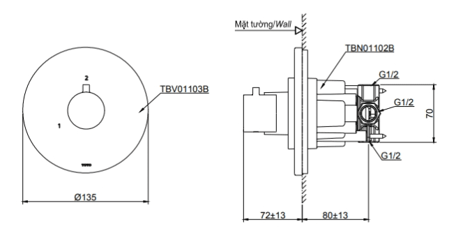 Thông số cơ bản của Van Điều Chỉnh Nhiệt Độ TOTO TBV01103B/TBN01102BB