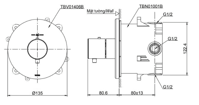 Thông số cơ bản của Van Điều Chỉnh Nhiệt Độ TOTO TBV01406B/TBN01001B
