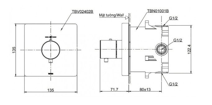 Thông số Van Điều Chỉnh Nhiệt Độ TOTO TBV02101B/TBN01104B