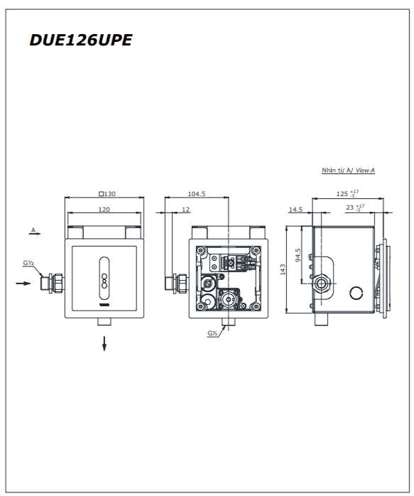Bản vẽ Van Xả Cảm Ứng TOTO  DUE126UK/VM2L037Z    220V Âm Tường