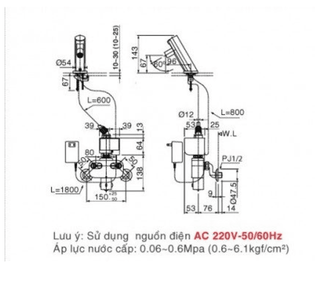•  Áp lực nước cấp 0.5- 0.6 Mpa ( 0.6-6.1 kgf/cm2)
