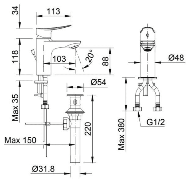 Bản vẽ kỹ thuật vòi lavabo nóng lạnh LFV-502S