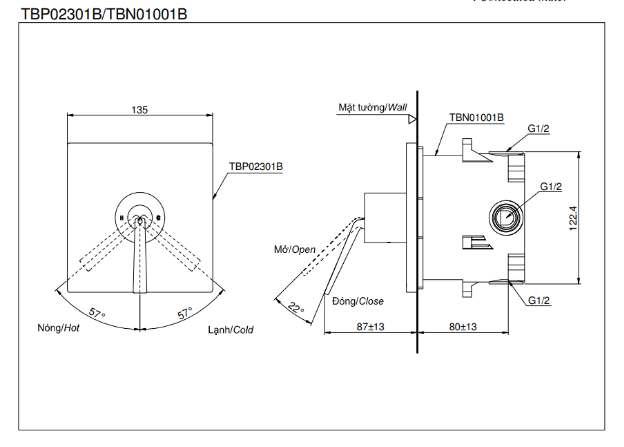 • Van gật gù điều chỉnh nóng lạnh ZL (không kèm phụ kiện âm tường)