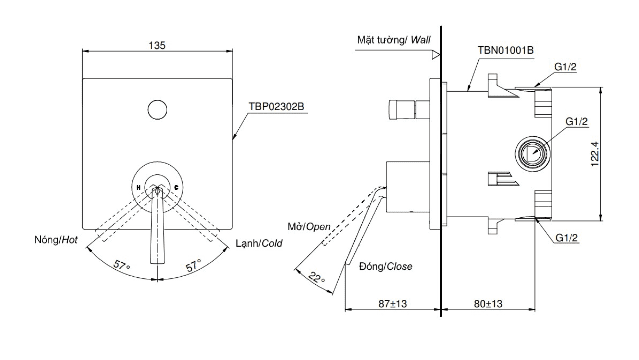Thông số cơ bản của Vòi Lavabo TOTO TBP02302B#BFG