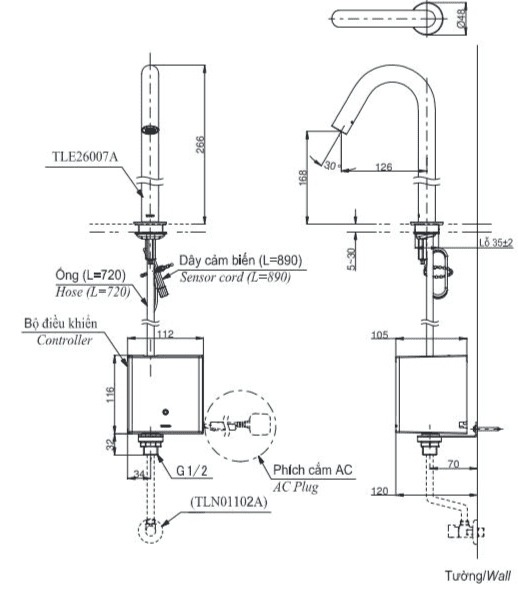 Thông số Vòi Lavabo TOTO TLE26007A Cảm Ứng Tự Động