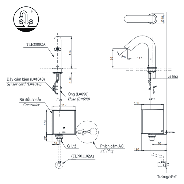 Thông Số Kỹ Thuật Của Vòi Lavabo TOTO TLE28002A/TLE01502A1/TLN01102A Cảm Ứng Nước Lạnh