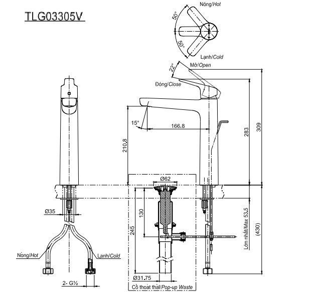Lưu ý: Bao gồm bộ xả, không gồm ống thải chữ P